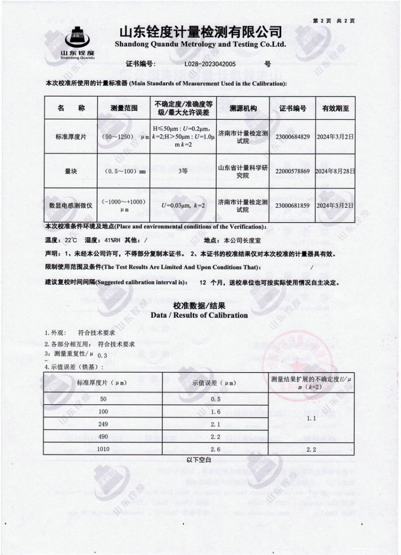 檢測儀器報告證書:塗層測厚儀